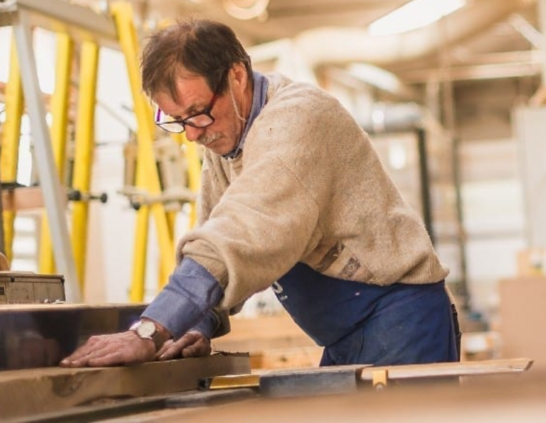 Für höchste Qualität und Präzision werden unsere Zirbenbetten in traditioneller Handarbeit gefertigt. Das Holz wird sorgfältig verarbeitet und fein gehobelt, bevor es zu einem massiven, langlebigen Bett zusammengefügt wird.